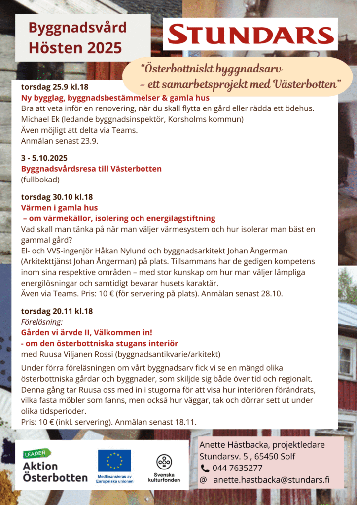– föreläsningar om österbottniskt och västerbottniskt byggnadsarv.